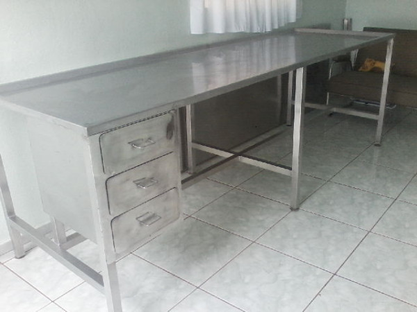 Fabricada em aço inox AISI 304, em chapas de 1,5 ou 2mm de espessura Base do tampo em tubos aço inox 304 20x30 Pes em tubos de aço inox 304, com regulagem de nivel Trava entre os pes em tubos de aço inox 304. Equipamento com qualidade e durabilidade, fabricado de acordo com a necessidade do cliente.