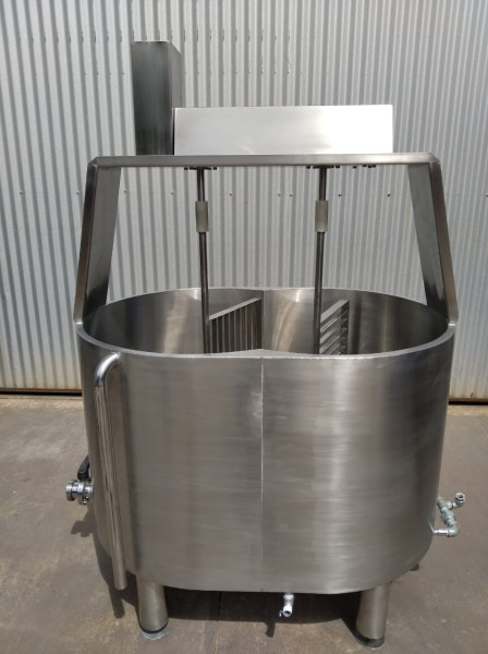 Máquina desenvolvida para fazer o processo de coalhada, Fabricada totalmente em aço inox AISI 304, Chapas nas espessuras de 3, 2 e 1,5mm de espessura com acabamento escovado . Possui duas liras reforçadas em aço inox 304 para corte de massa, em modelo horizontal e vertical, com engates rápidos facilitando sua remoção e limpeza. Formato oblongo para melhor homogeneização do produto Saída do Produto em válvula borboleta de 2 a 6’’ dependendo da capacidade do equipamento. Fundo cônico, o que garante 100% de drenagem. Contem motor com motorredutor Painel eletrônico de comando em aço inox 304 acompanhado por: – inversor de frequência para variar a velocidade conforme necessidade – Sensor de temperatura PT 100 – chave geral – Botão de emergência - Contatora - Lâmpadas de sinalização Estrutura reforçada em aço inox para os equipamentos de maiores capacidades. Motorização trifásica ou monofásica ( a escolha do cliente) Área de aplicação: Laticínios, equipamento utilizado para fabricação de queijo. Local onde ocorre a ingestão do coalho ao leite, a fermentação e o corte da massa automaticamente. O Equipamento é fabricado de acordo com a necessidade do cliente variando a capacidade entre 150lts a 5.000lts Vantagens do equipamento: Qualidade e durabilidade, projetos personalizados conforme a necessidade do cliente, manutenção e assistência técnica especializada, suporte e treinamento para a operação na entrega do equipamento.