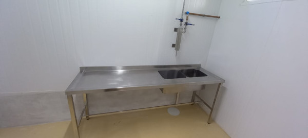Fabricada em aço inox AISI 304, em chapas de 1,5 ou 2mm de espessura Base do tampo em tubos aço inox 304 20x30 Pes em tubos de aço inox 304, com regulagem de nivel Trava entre os pes em tubos de aço inox 304. Equipamento com qualidade e durabilidade, fabricado de acordo com a necessidade do cliente.